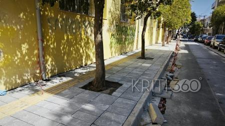 Τα καινούρια πεζοδρόμια κατασκευάζονται όπως είχε ανακοινωθεί: από τη μια πλευρά του δρόμου είναι φαρδιά και από την άλλη πλευρά δημιουργείται εσοχή με κυβόλιθο όπου παρκάρουν οχήματα.